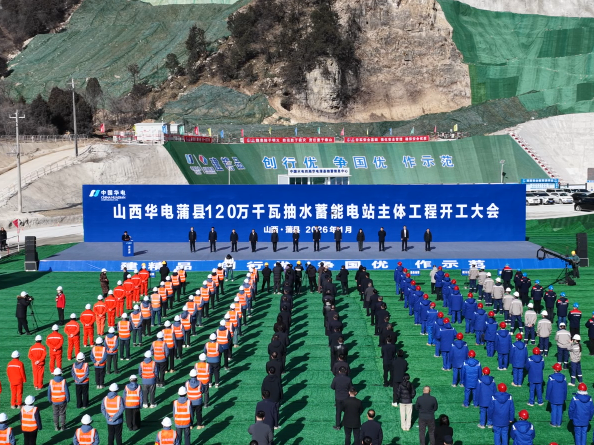 1月16日,山西蒲县抽水蓄能电站主体工程开工。该电站是全球首例在强岩溶发育地区河道上建设的采用全库盆沥青混凝土防渗技术的示范性工程,位于蒲县黑龙关镇和乔家湾镇境内,总装机容量1200兆瓦,安装4台300兆瓦可逆式水泵水轮机组。