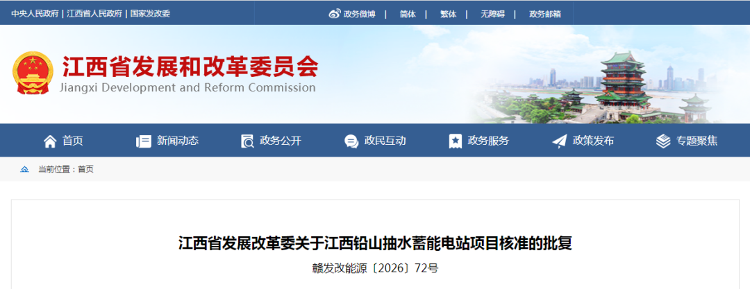 近日,江西省发展和改革委员会已正式批复同意建设江西铅山抽水蓄能电站项目,标志着该项目前期工作取得关键进展。