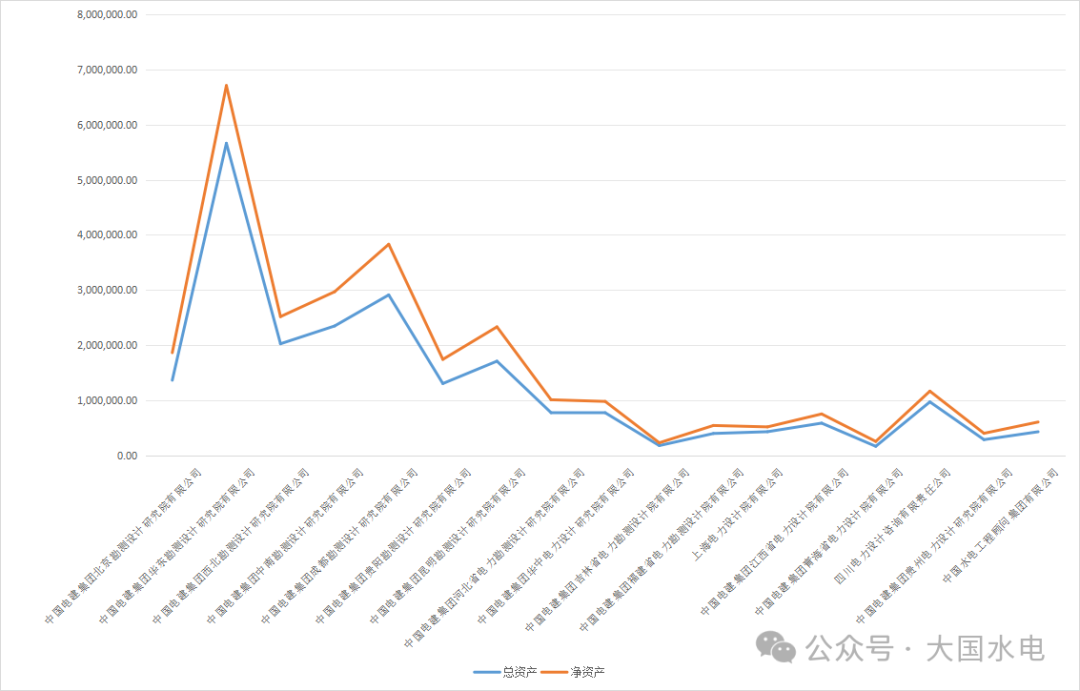 中国电建旗下17家勘测设计院,各设计院的经营表现差异巨大。从净利润看成都院、华东院、西北院排列前位,从总资产看华东院遥遥领先。