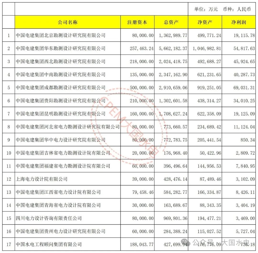 中国电建旗下17家勘测设计院