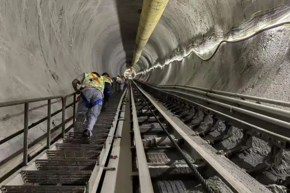 “天岳号”TBM挖掘出来的50度倾角的陡峭隧洞。