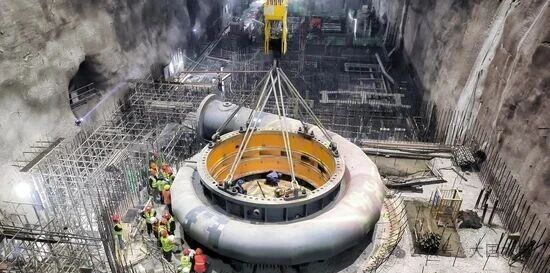 2025年12月13日,随着250吨桥式起重机精准操作,重达164吨的首台(1号)机组座环蜗壳平稳起吊,经过精准操控后,准确落位于主厂房1号机坑-3.0米高程平台,并由12套钢支墩稳固支撑。这一关键节点的顺利完成,标志着浙江永嘉抽水蓄能电站机电安装工程项目建设迈入新阶段。